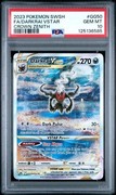 Crown Zenit is known for some of the most stunning artworks to ever make it in the Pokémon TCG, and this card is no exception. I remember when I saw the cardlist from Crown Zenith for the first time, this Darkai did stand out. Illustrated by Pani Kobayashi, this card is a prime example of unique cards. The usage of colors, the painted background and the pose of Darkrai… it all fits perfectly together.